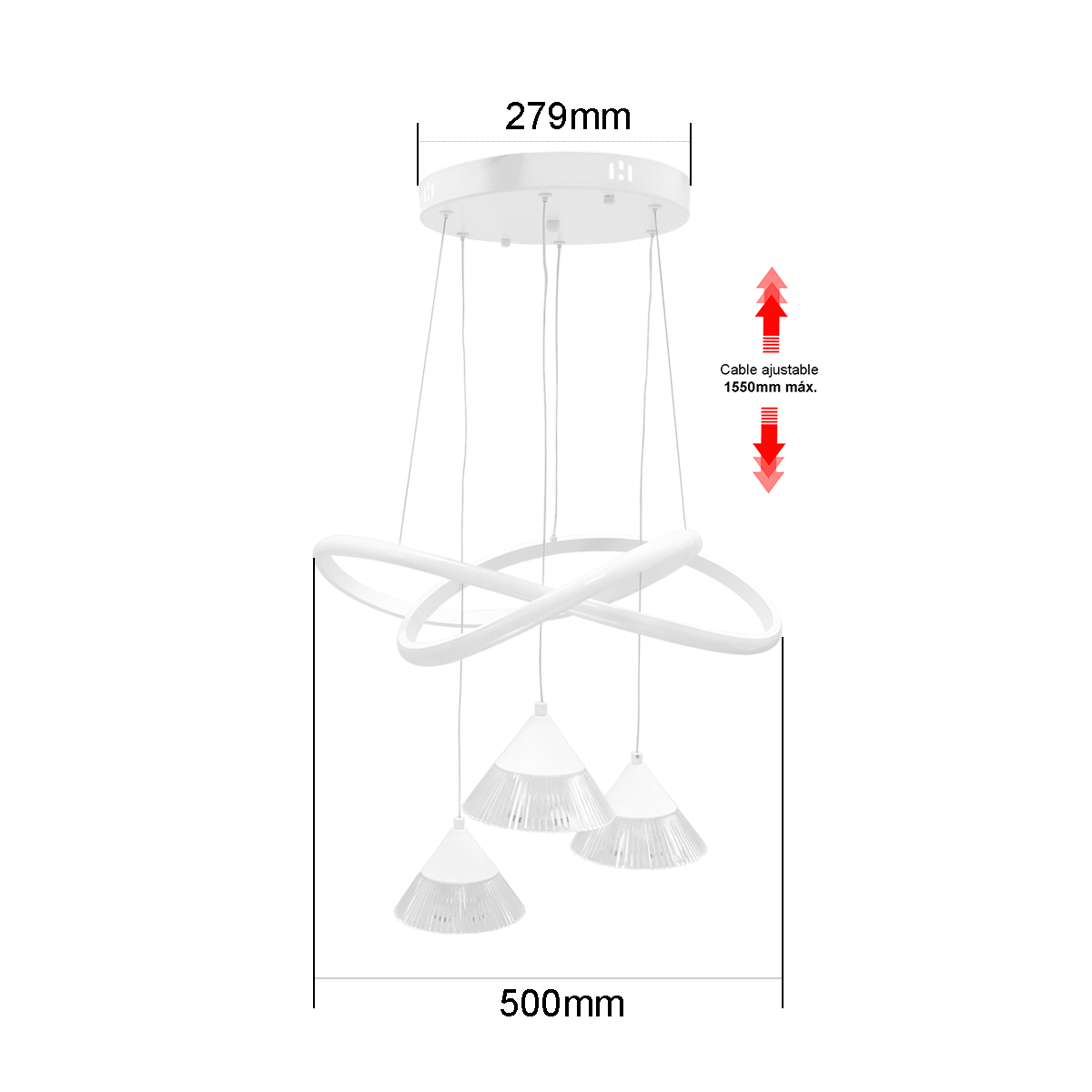 -Medidas: Diametro de base 279mm y 500mm ancho de la luminaria.