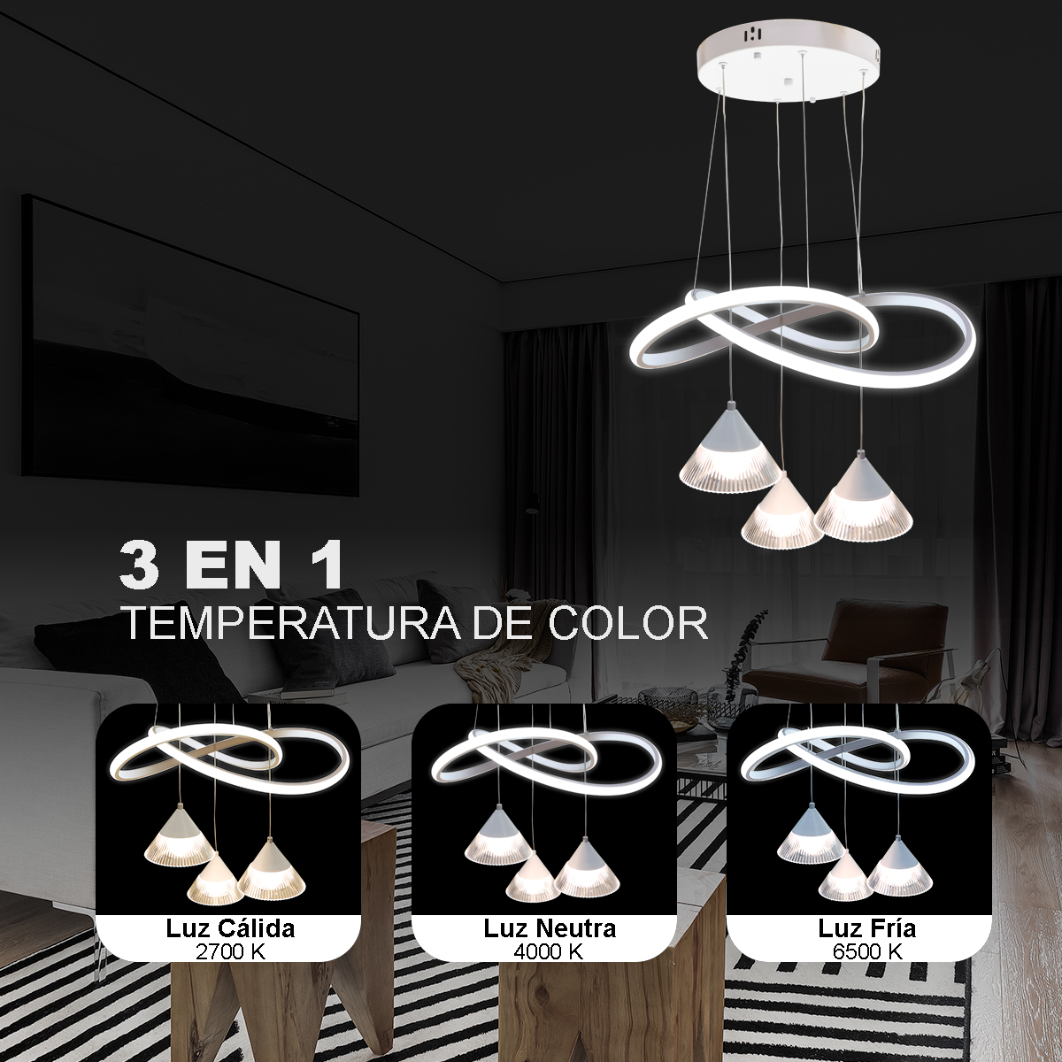 – 3 en 1 Cambia de color (Blanco 6500K/ Cálido 2700K y Neutro 4000K)