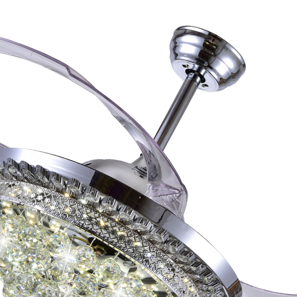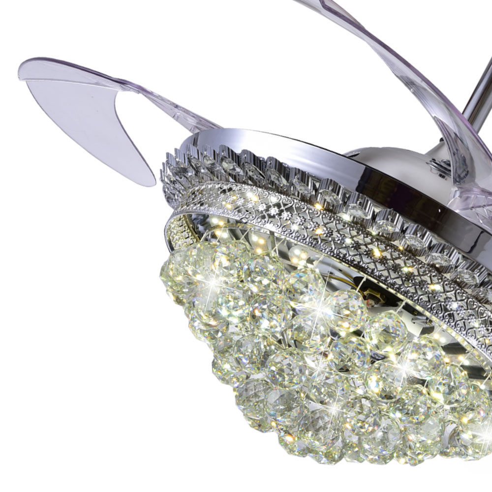 Ventilador de techo de cristal con aspas de acrílico transparentes retráctiles de ABS, lámpara de LED ideal para sala de estar, comedor y dormitorio.